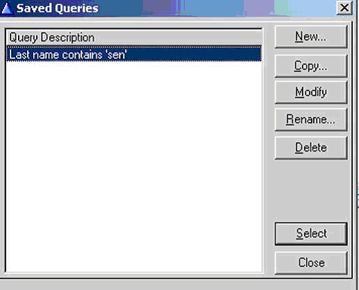 You can select from the list of already saved queries or create your own. The program will then search the data and will display any records that match your search criteria.