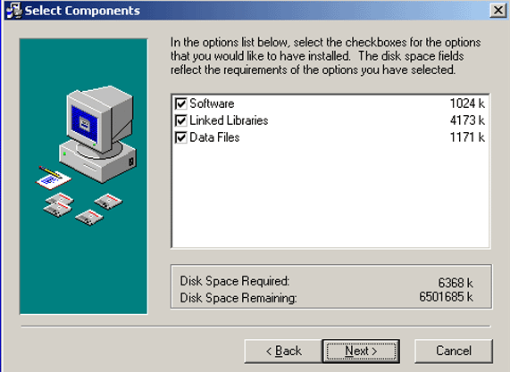 If this is an initial installation, check the Software, Linked Libraries, Data Files check boxes and press Next and accept the defaults presented. When the installation is finished, you will have an icon on your desktop labeled Cemetery DataSource.